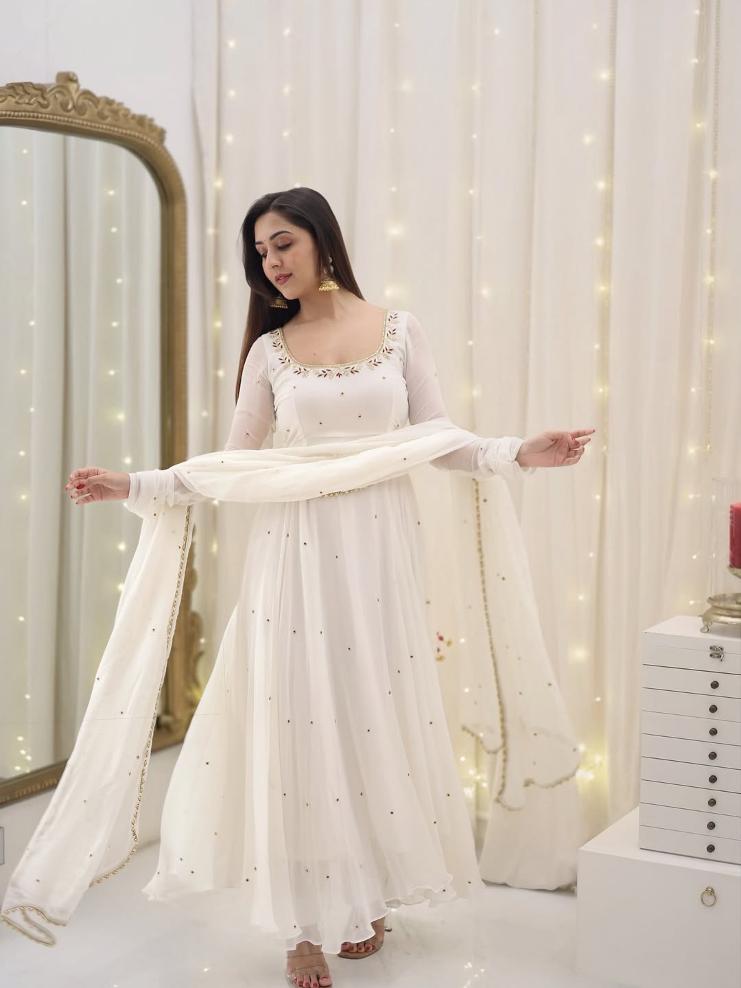 Bindiya White Faux Georgette Embroidered Suit Set